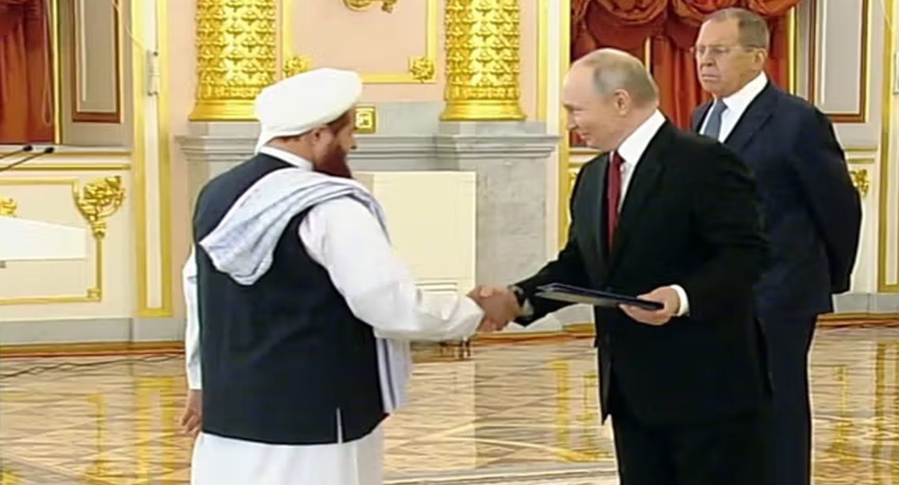 پوتین: افغانستان باید متحد، باثبات و دارای حکومت همهشمول باشد. گامی تازه در روابط مسکو و کابل؛ سفیر طالبان کار خود را به طور رسمی آغاز کرد. گل حسن، سفیر طالبان در مسکو، روز پنجشنبه در مراسمی رسمی در تالار الکساندر قصر بزرگ کرملین، اعتبارنامهٔ خود را به ولادیمیر پوتین، رئیسجمهور روسیه، تسلیم کرد.